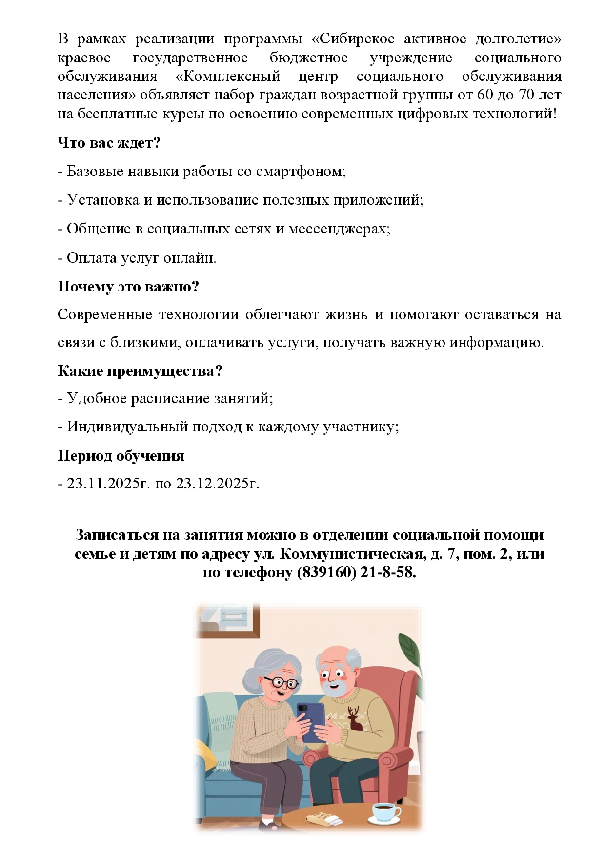 Узнать подробную информацию можно по телефону: 8 (39160) 21-8-58