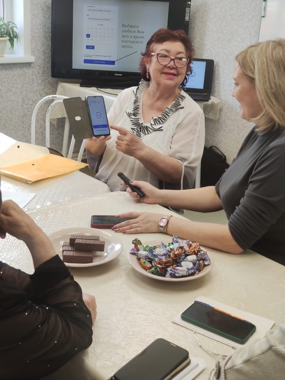 Для участников клуба друзей «Северное сияние», специалистом по социальной работе Ниной Александровной Дмитриевой проведено занятие по освоению портала Госуслуг. Использование портала Госуслуги открывает возможности для комфортной жизни в современном мире. С участниками занятия, разобрали первый урок, как легко и удобно записаться к врачу через портал Госуслуги: что не нужно стоять в очереди, лишний раз обращаться в регистратуру, а лишь нужно выбрать удобное время. В конце завершения занятия, гостей ждал горячий ароматный чай, во время чаепития, участники продолжили закреплять полученные знания.