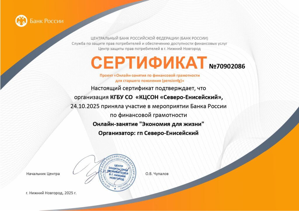 Проект Банка России «Онлайн-занятия по финансовой грамотности для старшего поколения» представляет собой серию вебинаров, разработанных специально для людей пенсионного и предпенсионного возраста, которые заинтересованы в изучении основ финансовой грамотности и улучшении своих финансовых навыков. Участники клуба друзей «Северное сияние» приняли участие в прослушивании лекционного материала на тему «Экономия для жизни рациональное использование средств». Это занятие стало поводом задуматься над управлением персональными финансами и освоить новые подходы к экономии. Ведущие эксперты поделились ценными рекомендациями по ведению личного бюджета, созданию накоплений и минимизации необдуманных расходов. Участники услышали полезные советы о том, как грамотно распределять доходы, планировать крупные покупки и избегать неоправданных растрат, зарабатывать на не нужных вещах, зарабатывать на своем хобби.